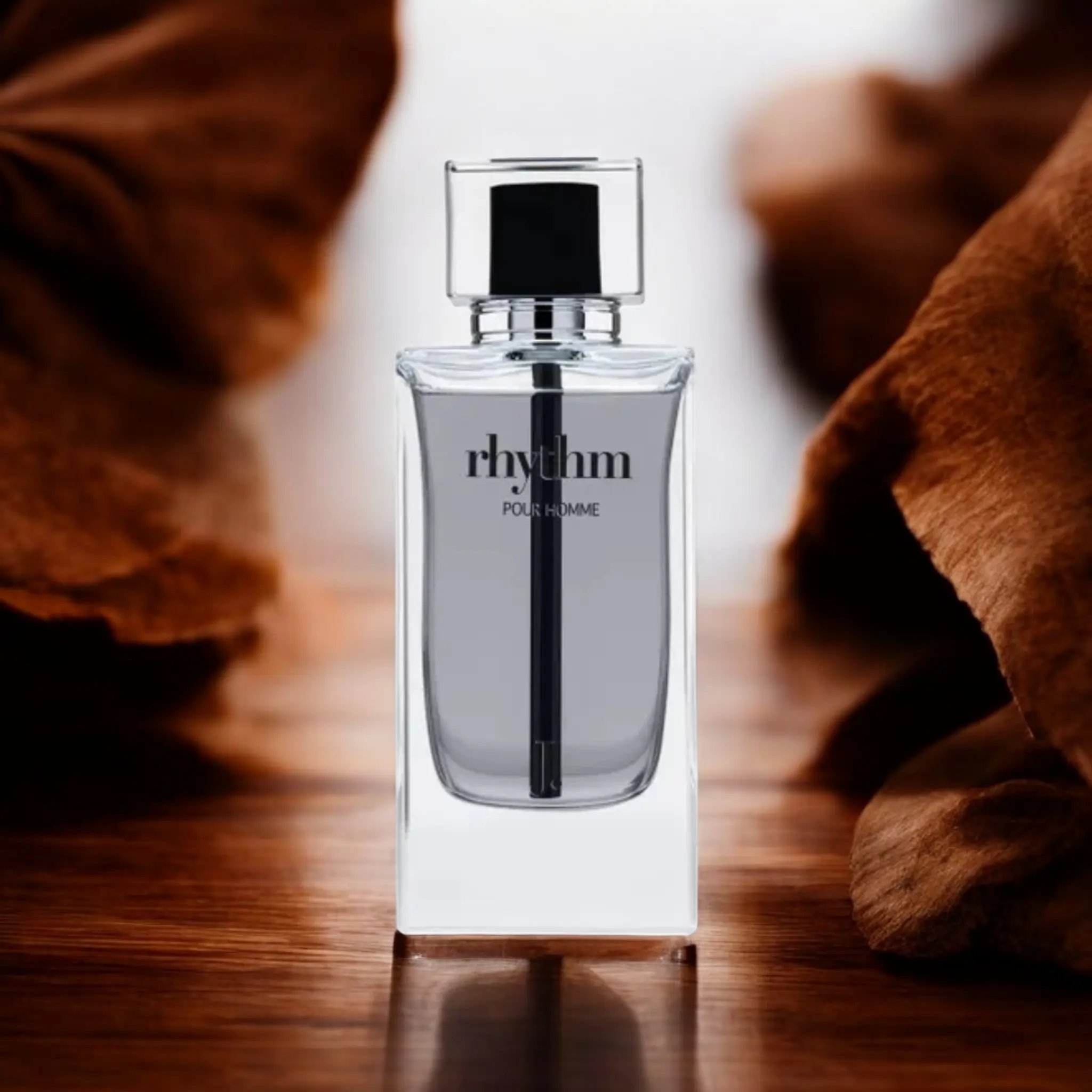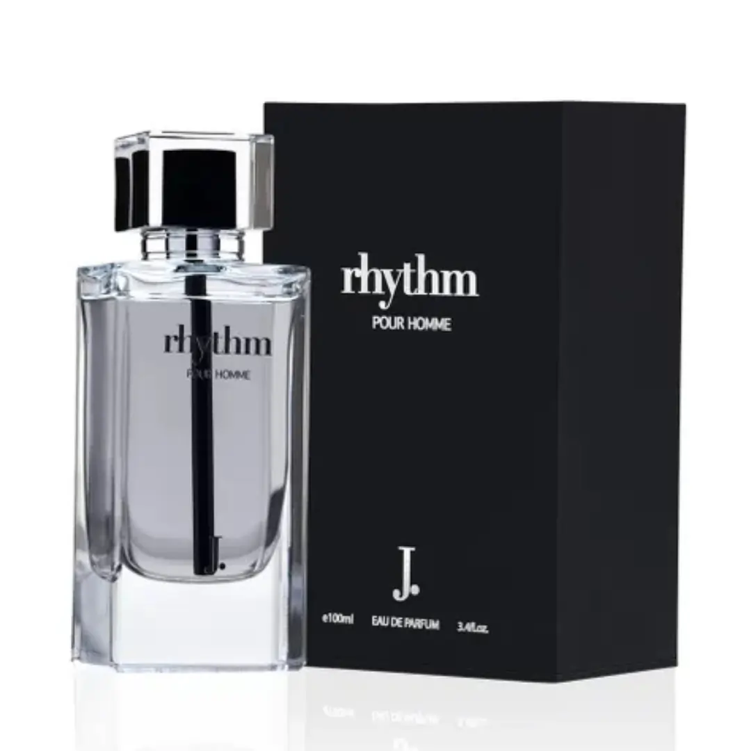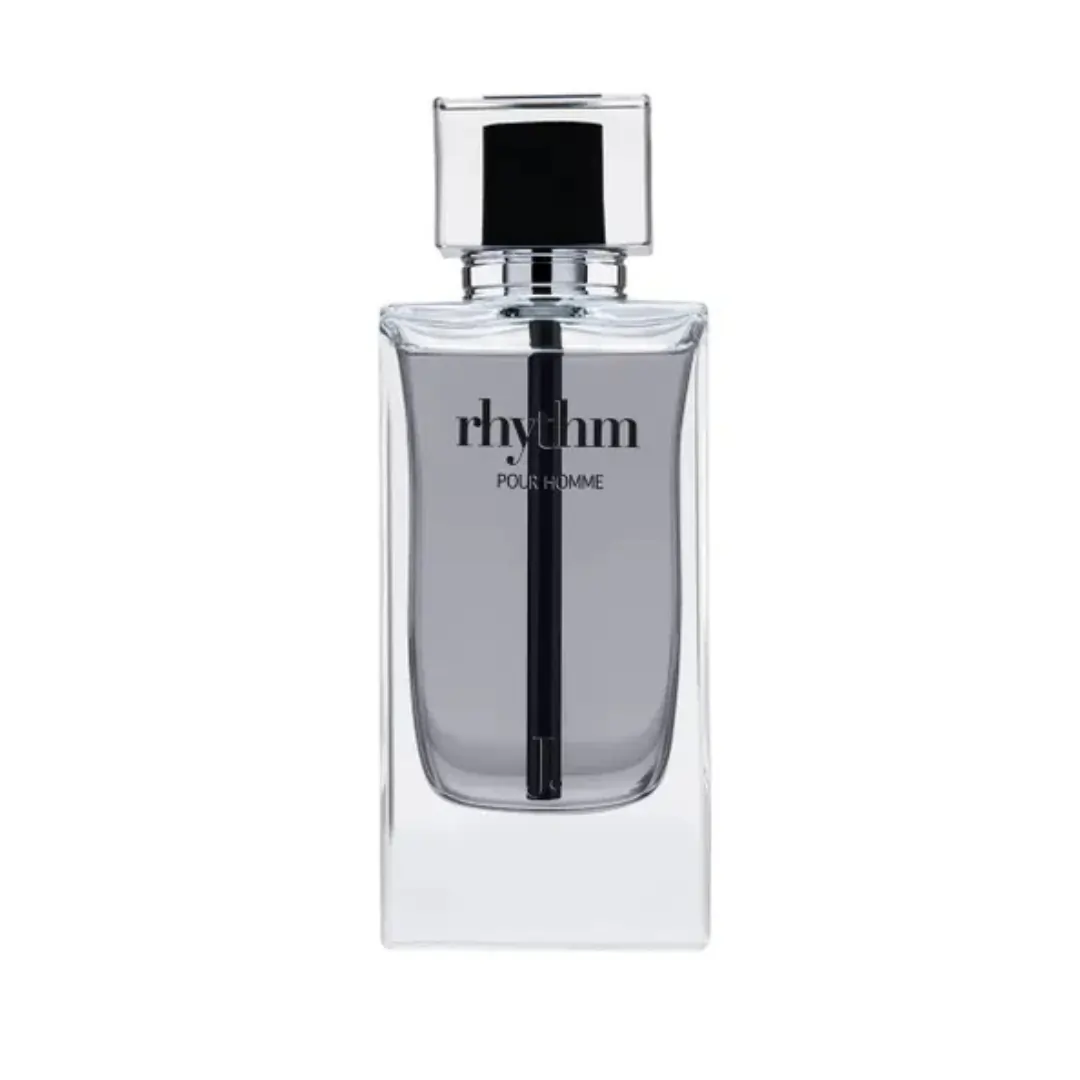 Rhythm Pour Homme is a woody, spicy fragrance for men, featuring refreshing citrus and aquatic top notes, followed by a warm, earthy base of tonka bean, amber, and musk.