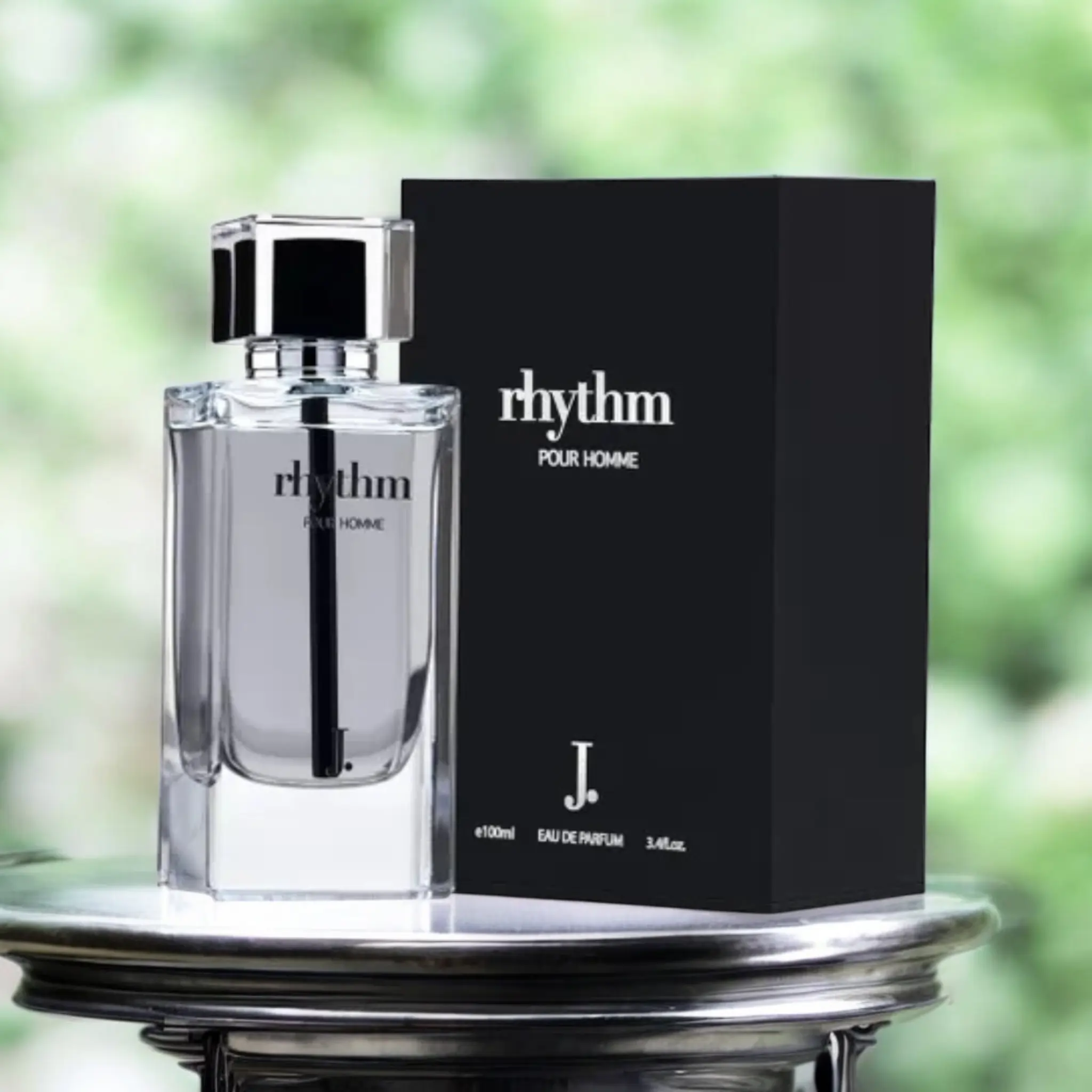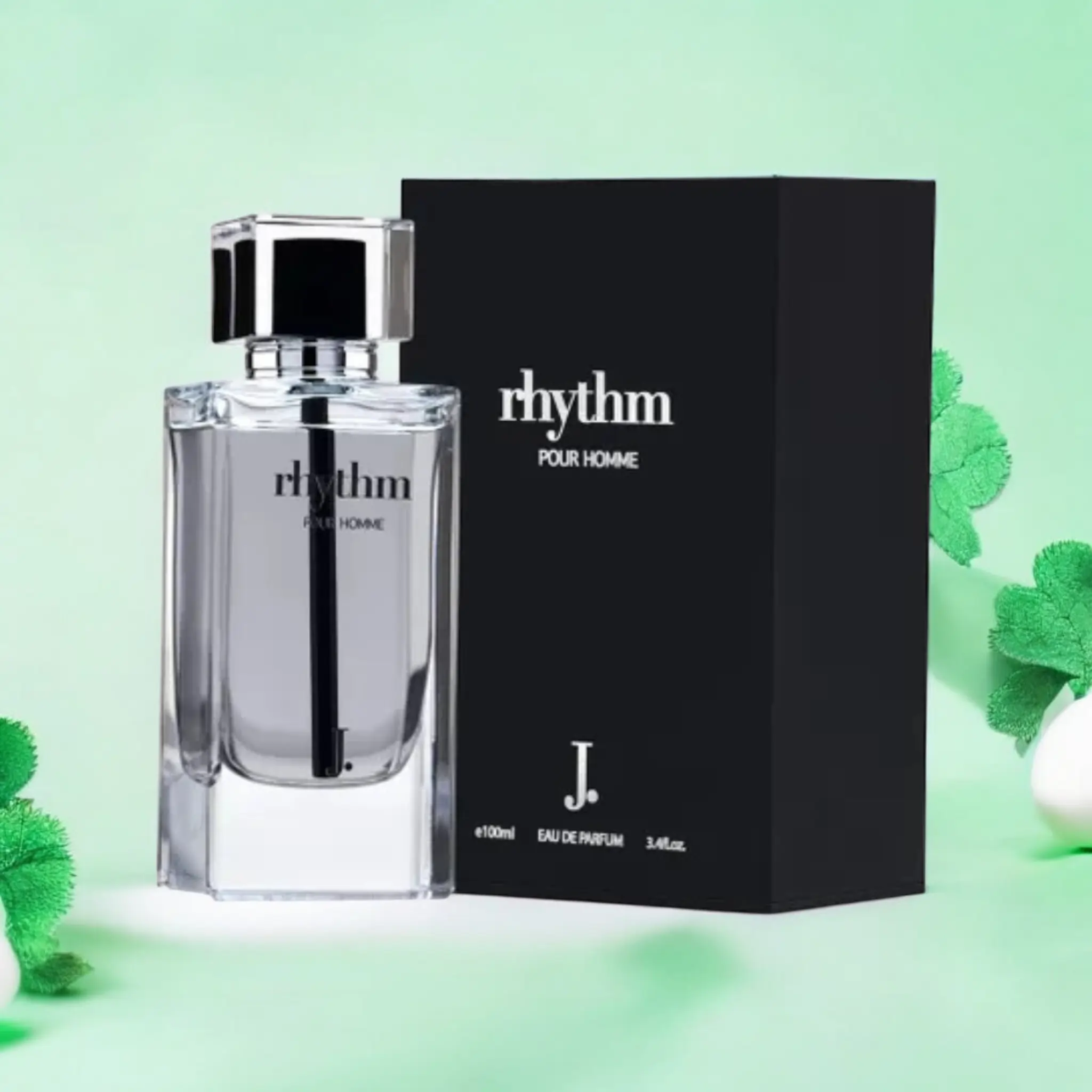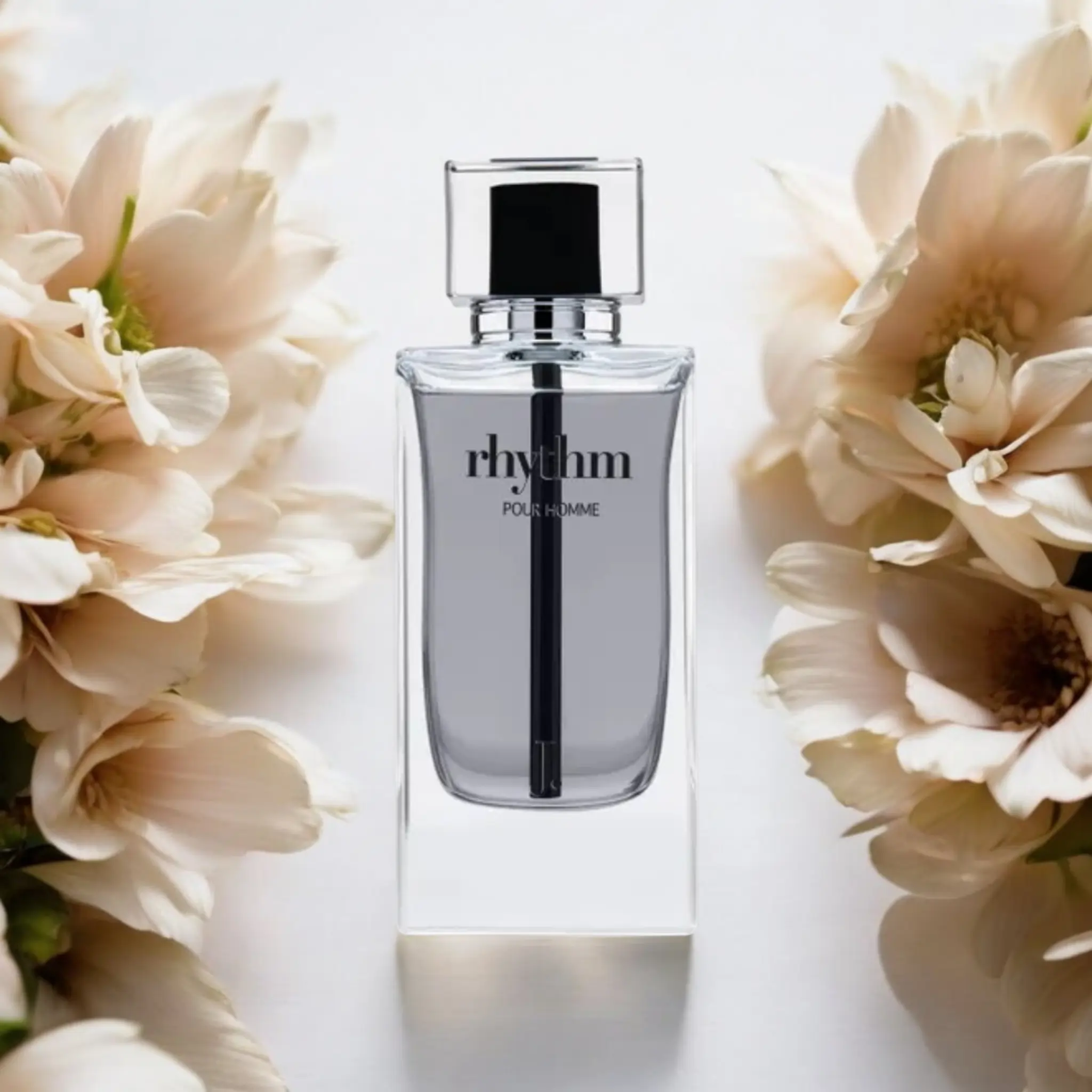 Rhythm Pour Homme is a woody, spicy fragrance for men, featuring refreshing citrus and aquatic top notes, followed by a warm, earthy base of tonka bean, amber, and musk.